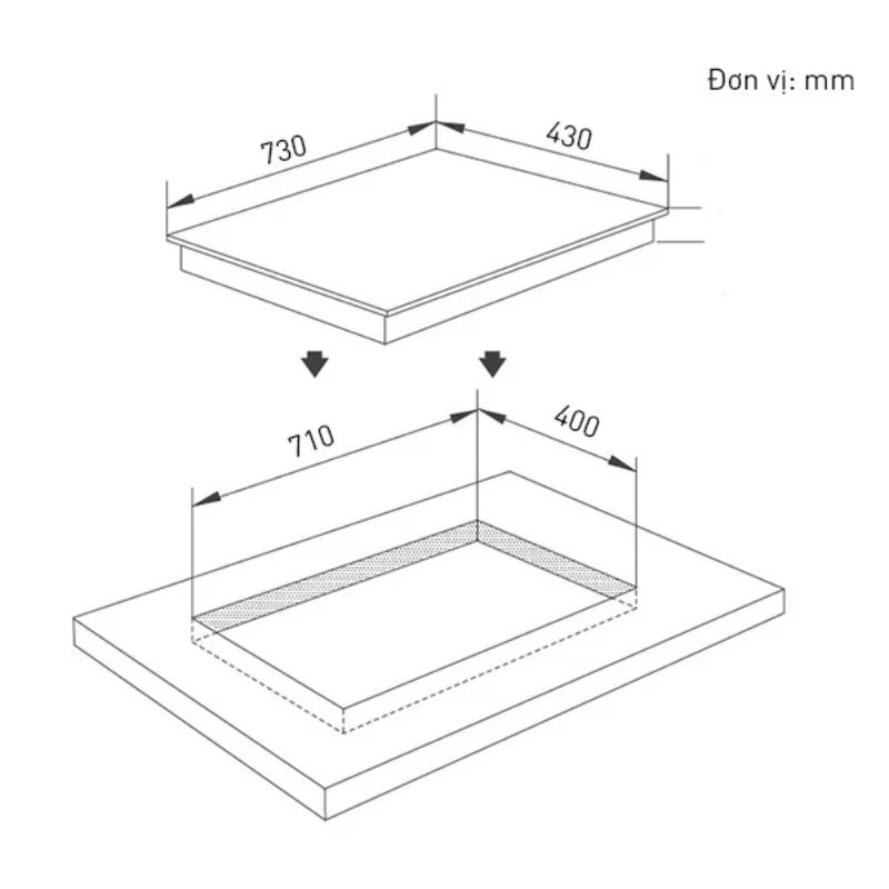 | Kích thước khoét đá | 710 x 400 mm |