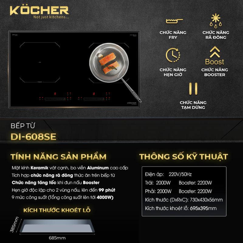 | Tên sản phẩm | Bếp từ 2 vùng nấu Kocher DI-608SE |