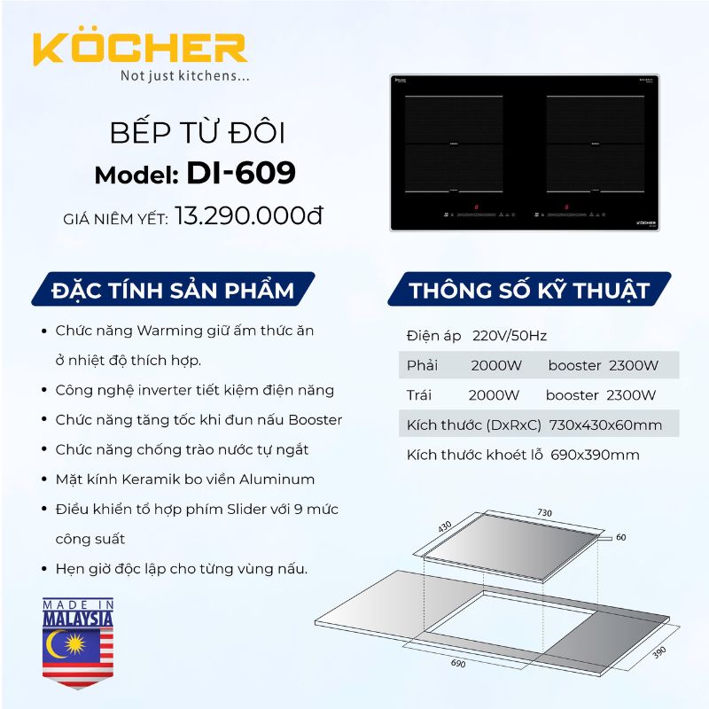 | Kích thước bếp | 730 × 430 × 60 mm |