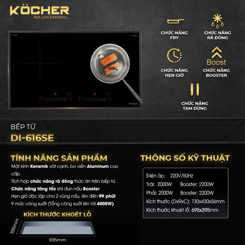 | Tên sản phẩm | Bếp từ 2 vùng nấu Kocher DI-616SE |