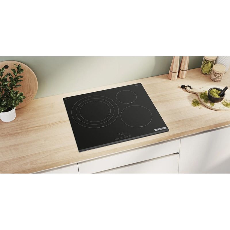 - Không chỉ mạnh mẽ trong hiệu suất, Bếp từ Bosch HMH.PID631BB5E còn chú trọng đến sự an toàn với cảnh báo nhiệt dư 2 cấp độ, khóa trẻ em, và chức năng tự động tắt khi quá nhiệt. Bên cạnh đó, tính năng hẹn giờ giúp người dùng chủ động hơn trong việc nấu nướng mà không cần phải đứng canh bếp liên tục.
