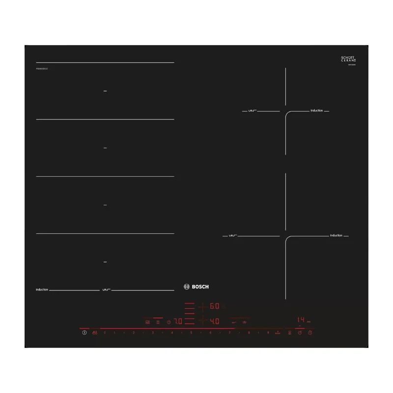 - Bếp từ Bosch PXE601DC1E DirectSelect Premium: Chọn vùng nấu, mức nhiệt và các chức năng chỉ cần chạm trực tiếp