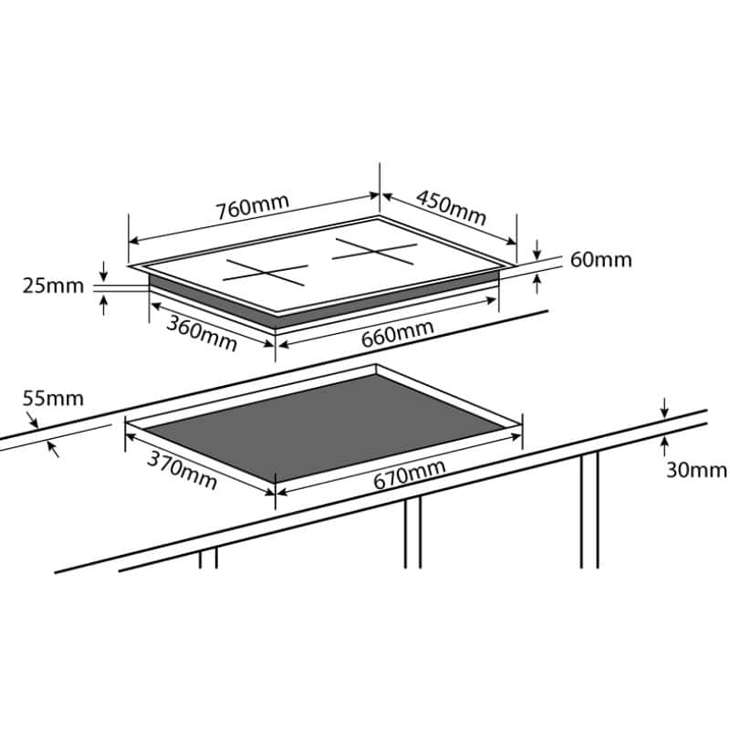 – Mặt kính liền nguyên khối, vát cạnh, màu đen sang trọng