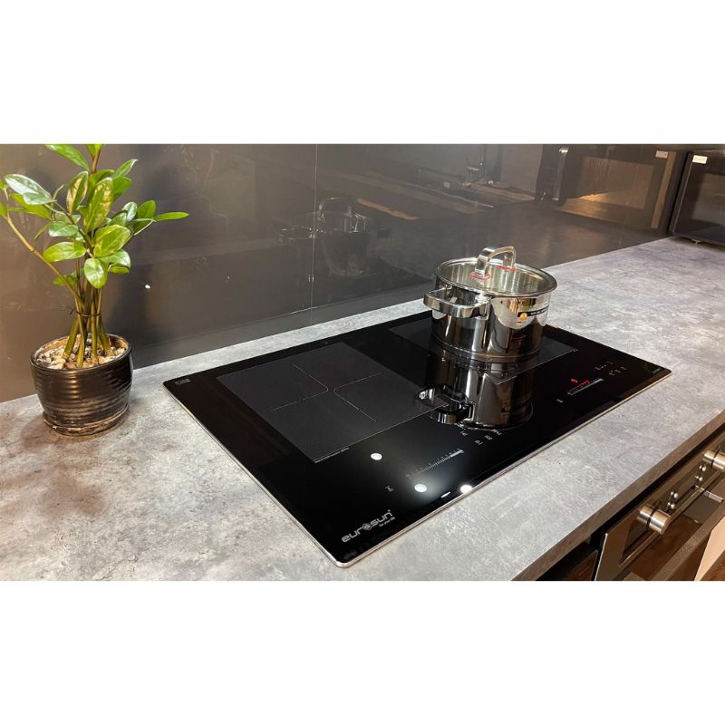 - Tự động phát hiện vùng nấu và vùng nấu chỉ nóng lên khi có nồi: Các sản phẩm bếp từ của Eurosun sẽ chỉ khởi động công suất khi nồi được đặt lên vùng nấu, trường hợp chưa đặt nồi khi đã khởi động, bếp sẽ không đóng công suất và cảnh báo mã lỗi không có nồi hoặc nồi không phù hợp.