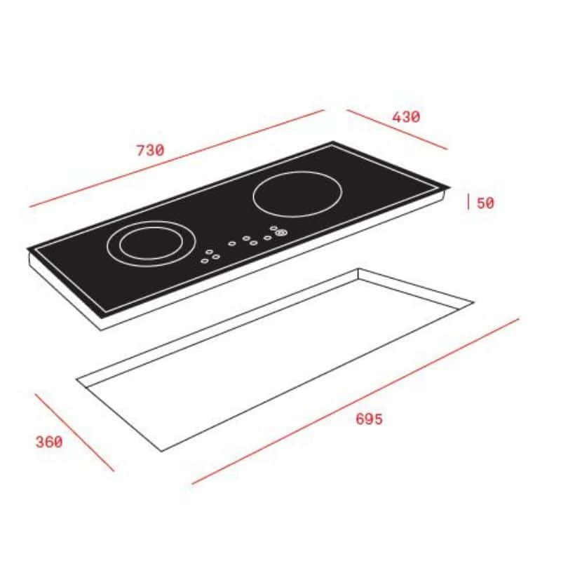 – 02 mặt bếp nấu: 01 bếp có vòng nhiệt Ø 260mm; 01 bếp có vòng nhiệt Ø 180mm