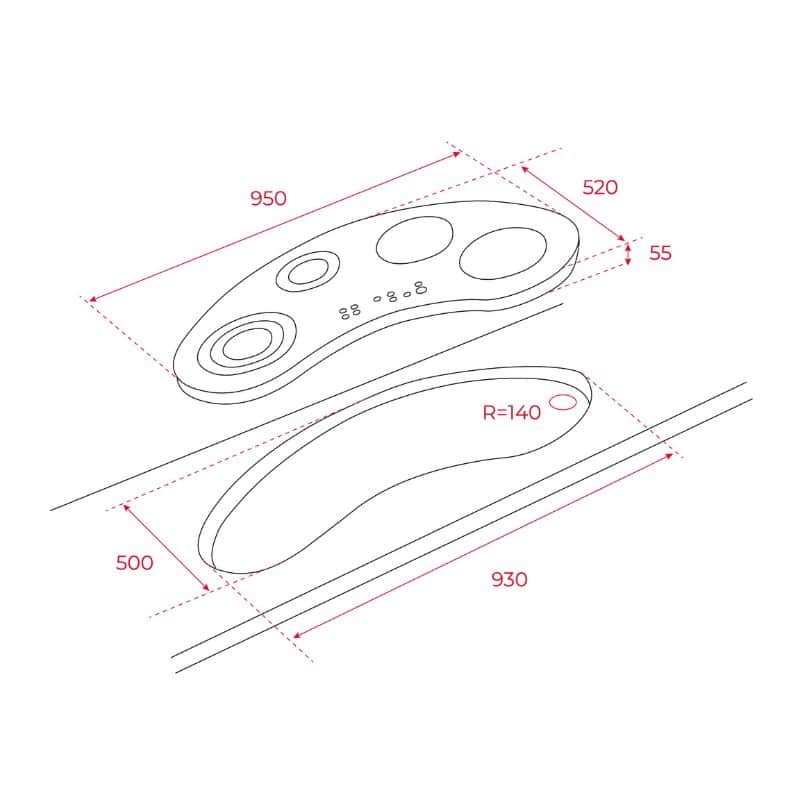 – Kích thước khoét đá 930×500 mm