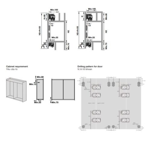 Bộ phụ kiện cho 1 cặp cửa trượt xếp Hafele 401.30.009