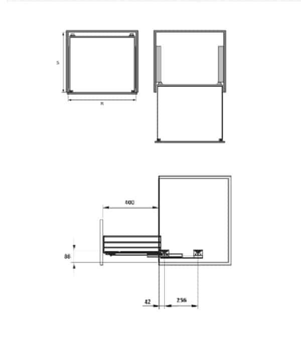 - Chiều rộng lọt lòng (R): Tối thiểu 562 – 568mm