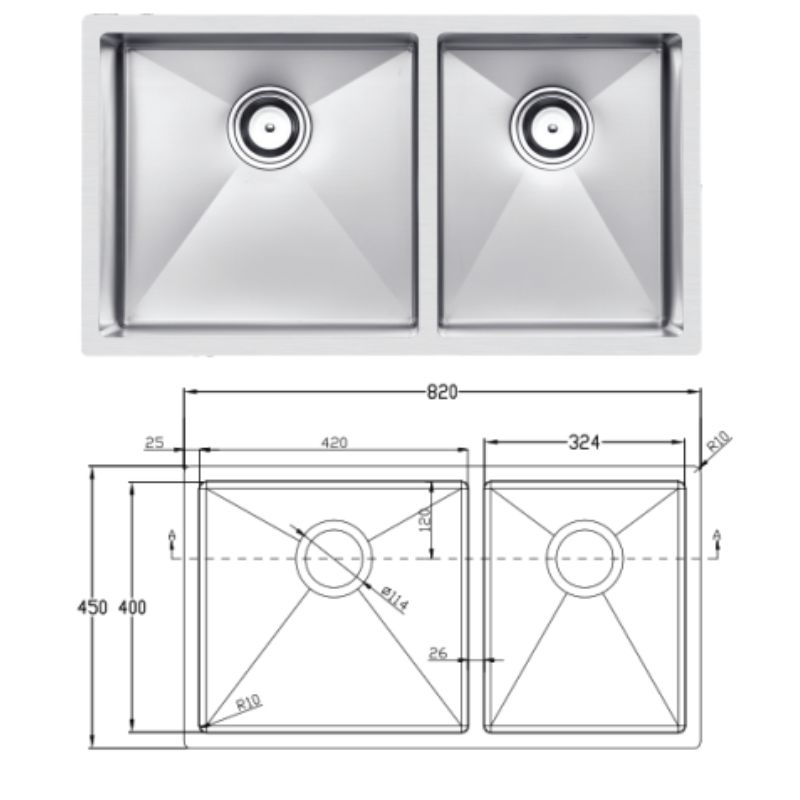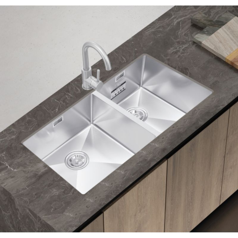 - Là loại chậu rửa đôi inox có cánh chờ, 2 bên hộc rửa được thiết kế vuông vắn. Hộc rửa ở phía bên phải có kích thước nhỏ hơn hộc rửa bên trái.