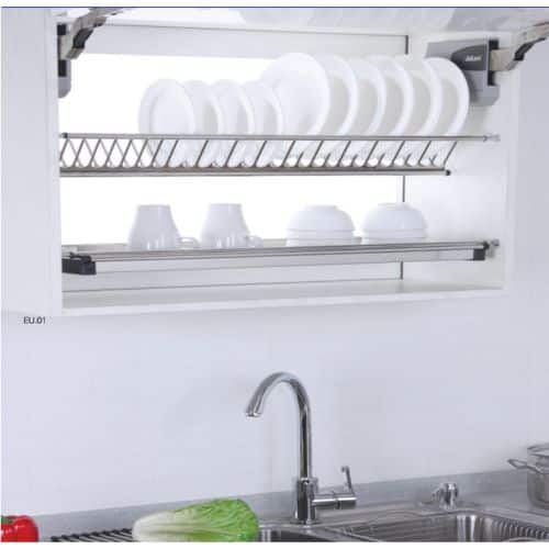 - Nên lắp đặt giá bát đĩa ngay trên bồn rửa vừa giúp úp bát đĩa nhanh chóng khi rửa xong vừa giúp nước sẽ nhỏ trực tiếp xuống bồn rửa mà đôi khi không cần phải dùng khay hứng.