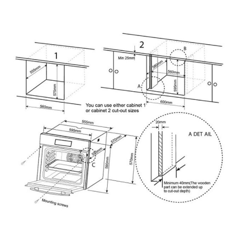 – Kích thước lắp đặt: ( Dài x rộng x sâu) 590 x 560 x 555mm.
