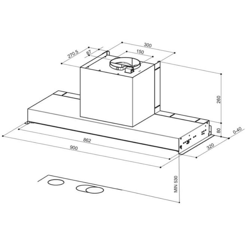 – Máy hút mùi âm tủ, Inox kết hợp kính trắng