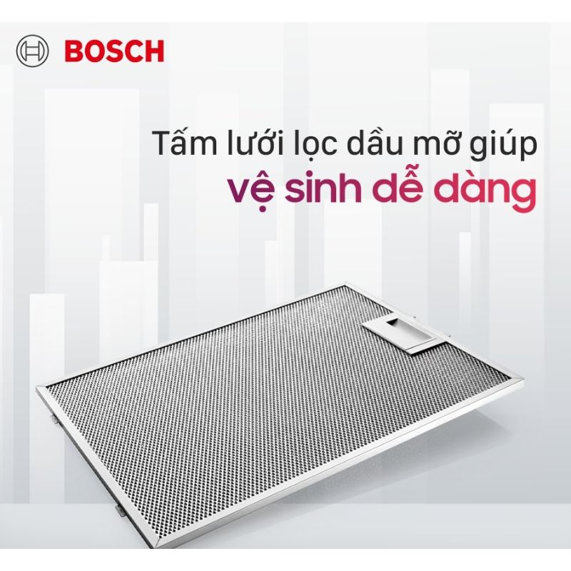 Máy hút mùi Bosch DFT63CA51T thiết kế âm tủ gọn gàng, công suất hút mạnh mẽ, vận hành êm ái, phù hợp cho mọi không gian bếp hiện đại.