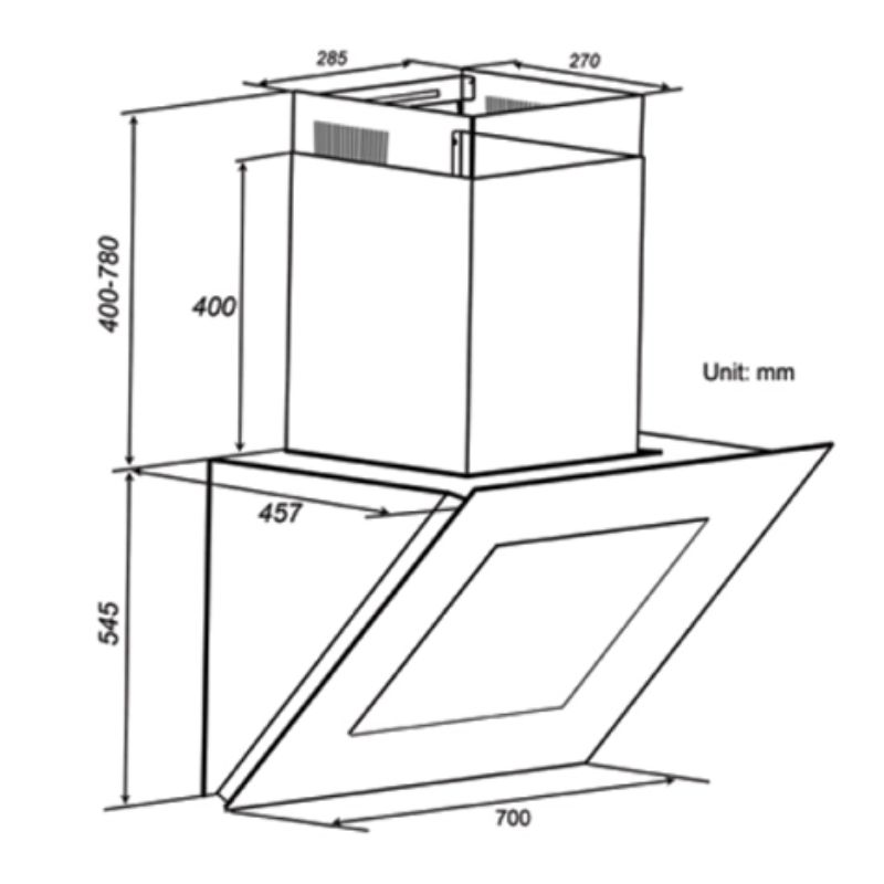 - Lỗ thoát khí: Ø15 cm, thuận tiện lắp đặt ống dẫn ra ngoài, tối ưu hiệu quả hút mùi.