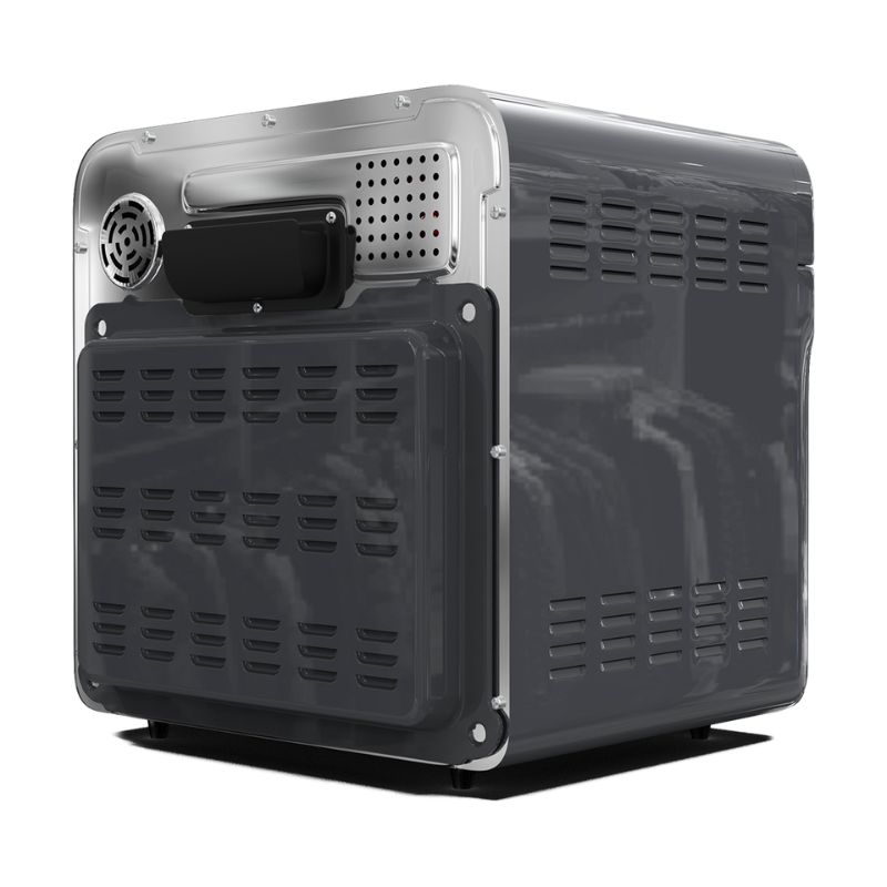- Khoang lò được làm bằng Inox 304 không gỉ, kết hợp với đèn chiếu sáng khoang nướng Halogen 20W. Giỏ nướng, khay lưới, thanh xiên được làm bằng thép không gỉ 403. Khay hứng được làm từ thép tráng men Ceramic được làm 100% từ khoáng chất vô cơ không phản ứng với thực phẩm, khả năng chịu nhiệt lên đến 450 độ C, bền bỉ.