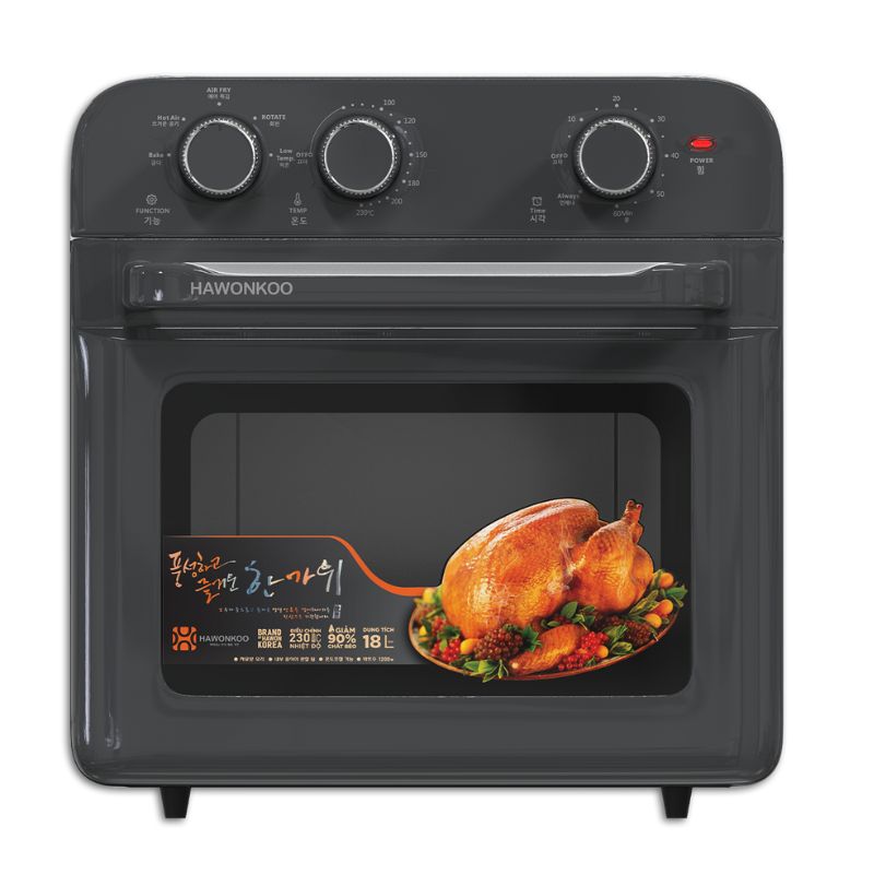 - Dung tích lớn 18L: Hawonkoo AFH-180 GR có dung tích cực lớn lên đến 18 lít tha hồ chiên nướng. Có thế nướng gà nguyên con hoặc chế biến lượng lớn thực phẩm cùng lúc, sẵn sàng phục vụ mọi bữa tiệc bên cạnh người thân hoặc bạn bè.