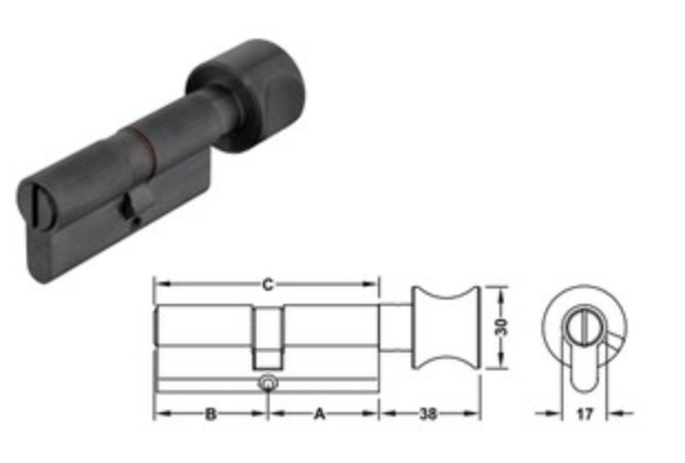 Ruột khóa 1 đầu chìa, 1 đầu vặn Hafele 916.08.426, 91mm Đồng thau