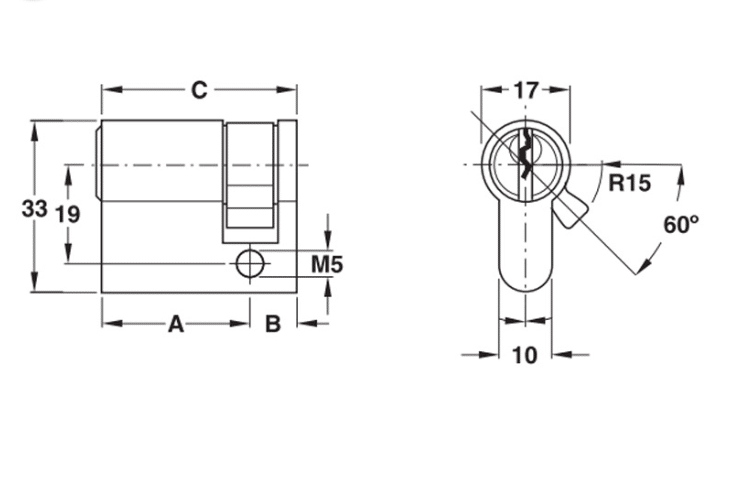 Thông số kĩ thuật của ruột khóa 1 đầu Hafele 916.00.605