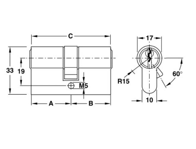 Thông số kĩ thuật của ruột khóa 2 đầu Hafele 916.96.601