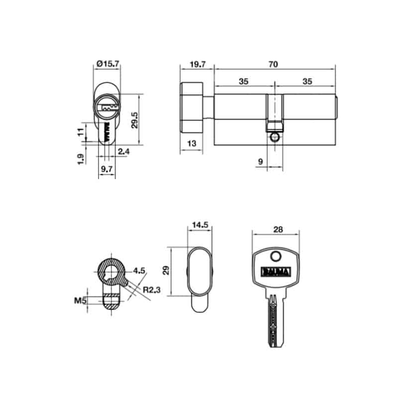 Thông số kỹ thuật của ruột khóa đầu vặn đầu chìa 70mm Bauma 916.87.826