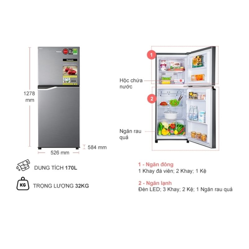 Tủ Lạnh 2 cánh Inverter 170 Lít Panasonic NR-BA190PPVN