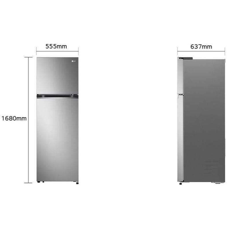 - Tủ lạnh LG Inverter 266 lít GV-B262PS thiết kế tối giản theo xu hướng hiện đại, tay cầm chìm tinh tế. Gam màu bạc thanh lịch, sang trọng, nổi bật dễ dàng phối hợp hài hòa với nhiều không gian nội thất. Cửa tủ được làm bằng thép không gỉ bền đep, hạn chế bám dính vân tay, dễ dàng làm sạch khi cần. Tủ lạnh 2 cửa LG bố trí ngăn đá trên truyền thống, phù hợp với thói quen của đa số người dùng Việt Nam. Kích thước nhỏ gọn với dung tích 266 lít, thích hợp cho các gia đình 2-4 người, nhu cầu lưu trữ ít.