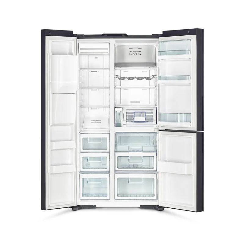 - Thiết kế sang trọng, độc đáo: Tủ Lạnh Hitachi Inverter 569 Lít R-FM800XAGGV9X GBZ có thiết kế Side by side 3 cửa độc đáo, hiện đại và gây ấn tượng với khách hàng nhờ mặt gương đồng sang trọng cùng hiệu ứng lấp lánh đẹp mắt giúp tô điểm thêm cho không gian nội thất của gia đình bạn. Đồng thời, mặt kính phẳng của chiếc tủ lạnh Hitachi này còn được tích hợp bảng điều khiển cảm ứng tiện lợi giúp người dùng có thể điều chỉnh cài đặt một cách dễ dàng hơn. Bên cạnh đó, chiếc tủ lạnh này còn vô cùng nổi bật với tấm ốp hợp kim nhôm trên thân tủ giúp thu hút người dùng từ cái nhìn đầu tiên. Đồng thời, Tủ Lạnh Hitachi Inverter 569 Lít R-FM800XAGGV9X GBZ còn sở hữu nội thất thanh lịch với đèn LED dịu mát, kệ chứa rượu tiện lợi giúp không gian bếp trở nên đẳng cấp hơn. Một ưu điểm vượt trội về thiết kế nữa mà sản phẩm này sở hữu chính là công nghệ cửa tự động giúp người dùng có thể dễ dàng mở cửa ngay khi không rảnh tay. Chỉ với thao tác chạm hoặc trượt đơn giản thì bạn đã có trải nghiệm mở cửa thú vị. Tủ Lạnh Hitachi nhiều cửa Inverter R-FM800XAGGV9X GBZ có dung tích lên đến 569 lít và hoàn toàn phù hợp với gia đình có trên 5 thành viên. Giờ đây bạn có thể dự trữ đồ ăn thỏa thích sau mỗi lần đi chợ, từ đó tiết kiệm đáng kể thời gian và công sức.